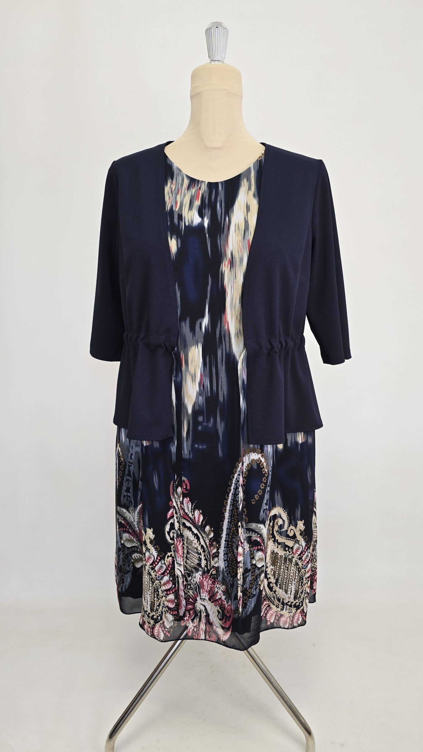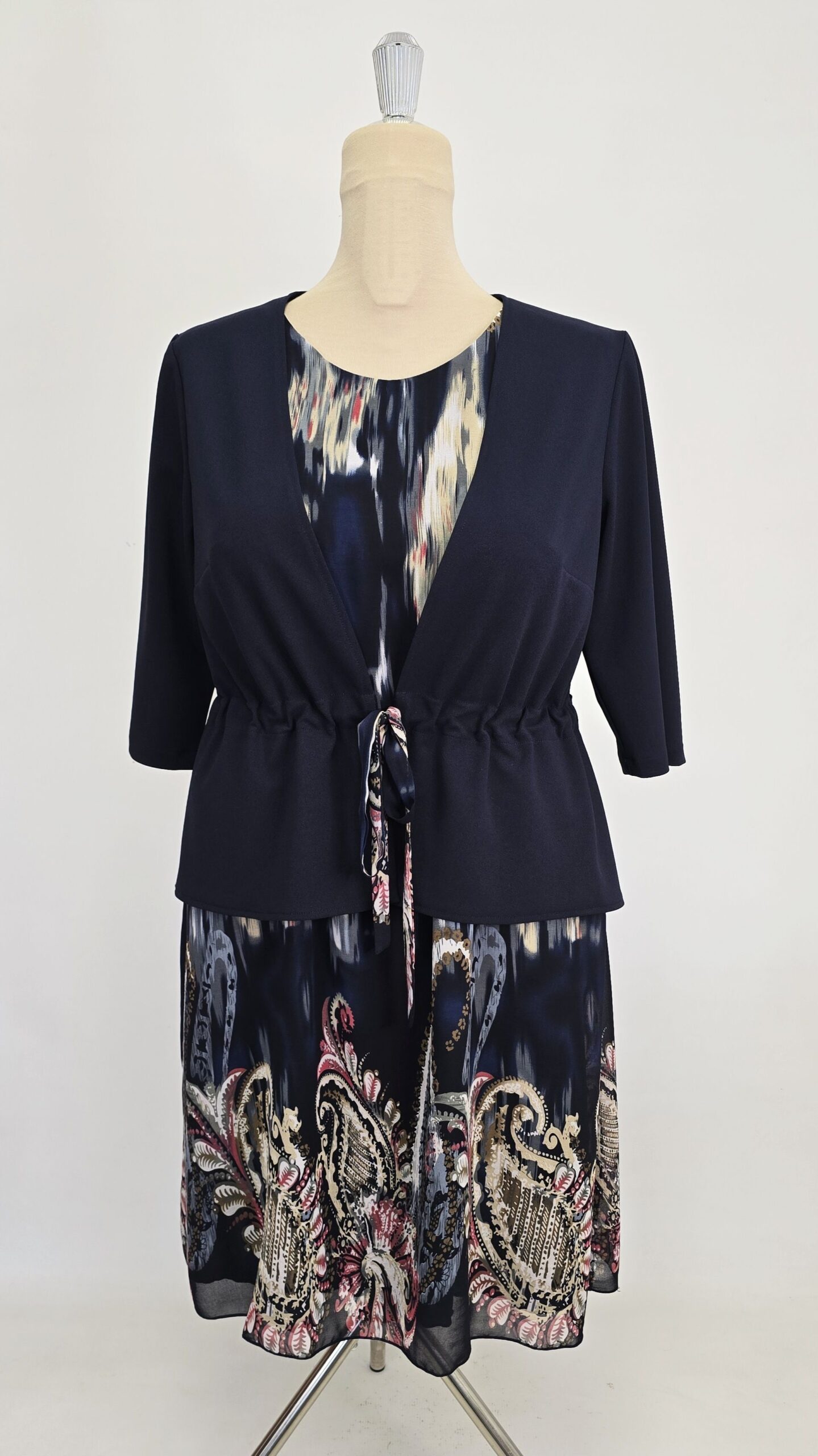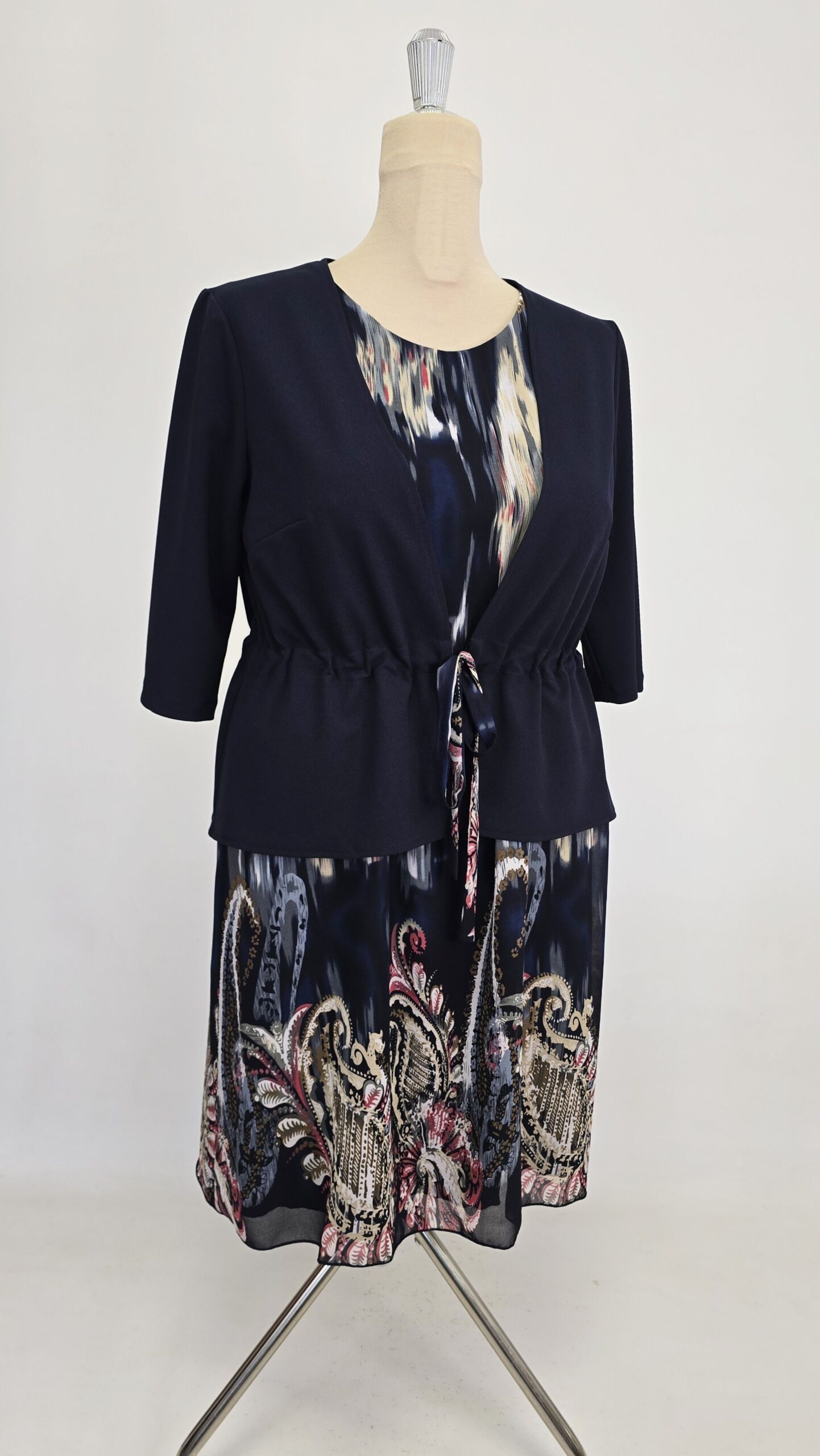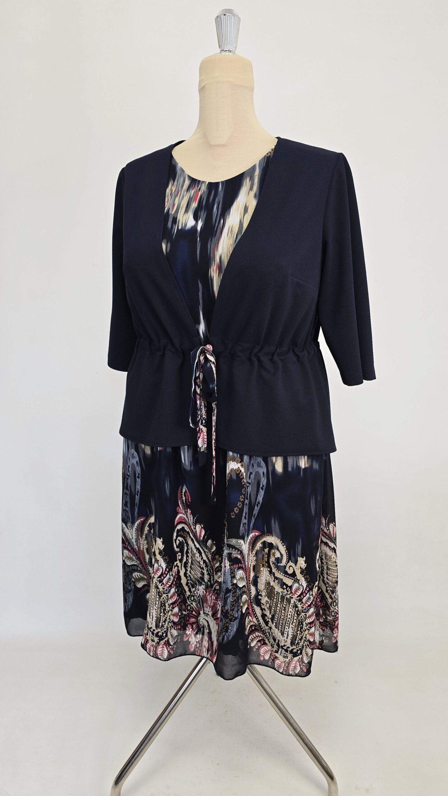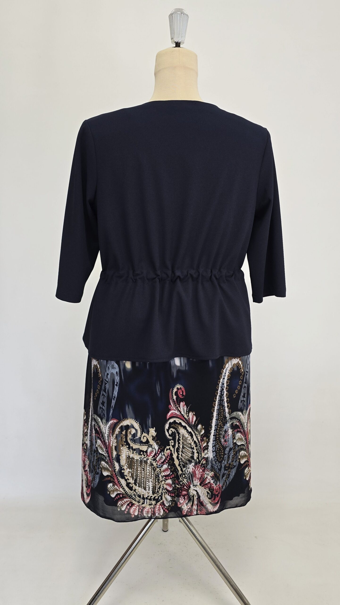 Material: voal imprimat, căptușeală milaneză elastică, jachetă din crep elastic