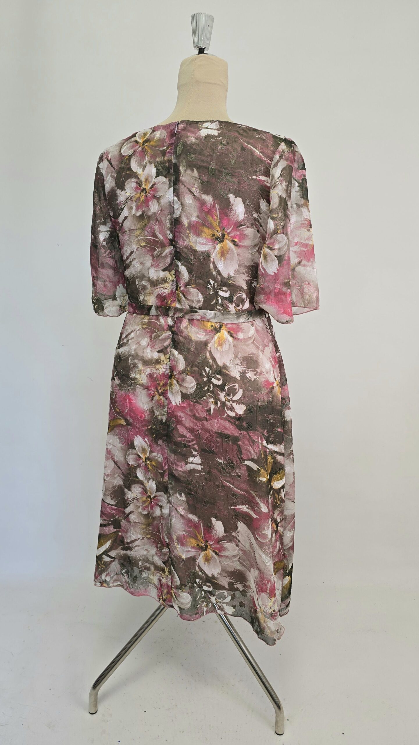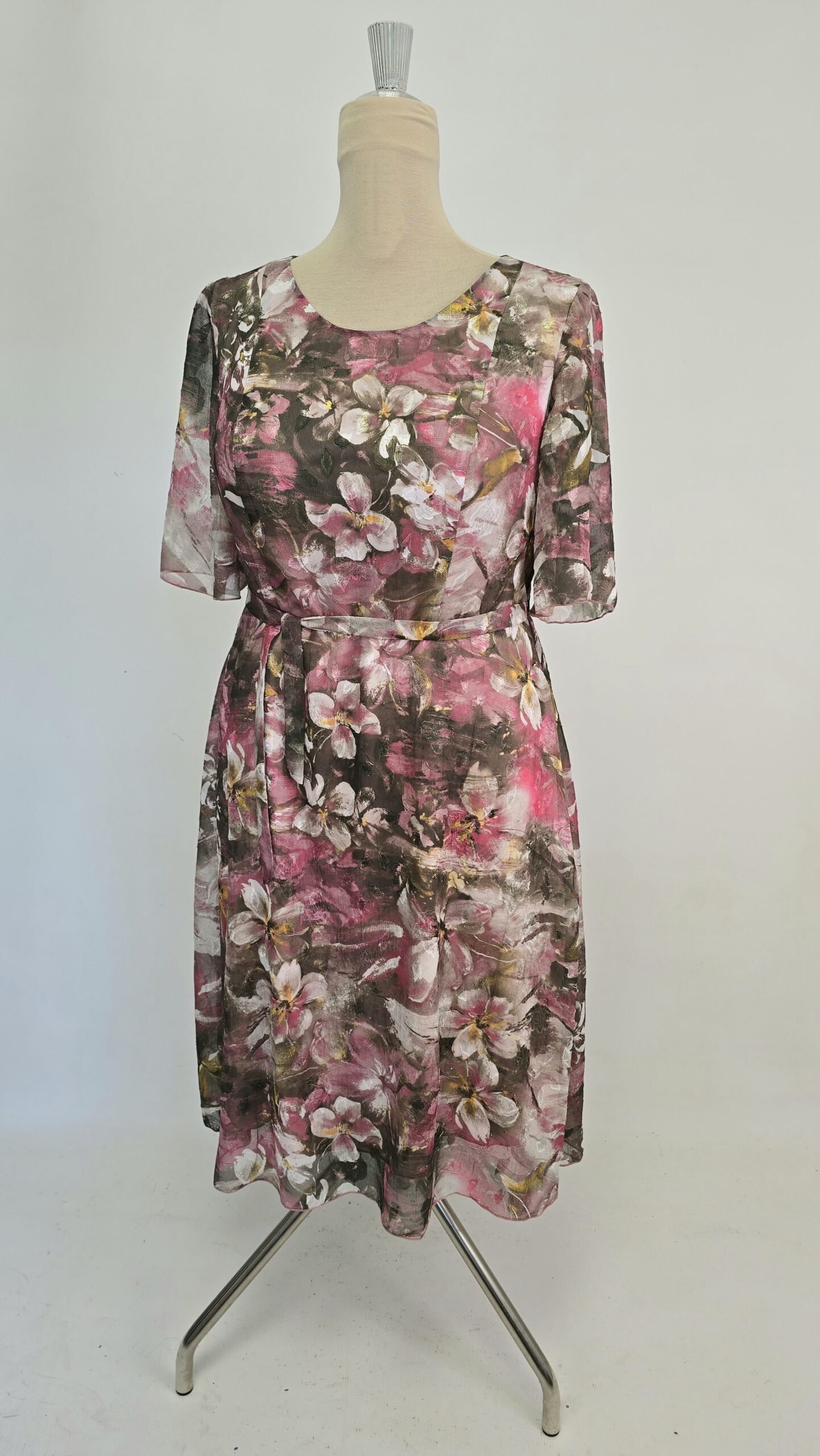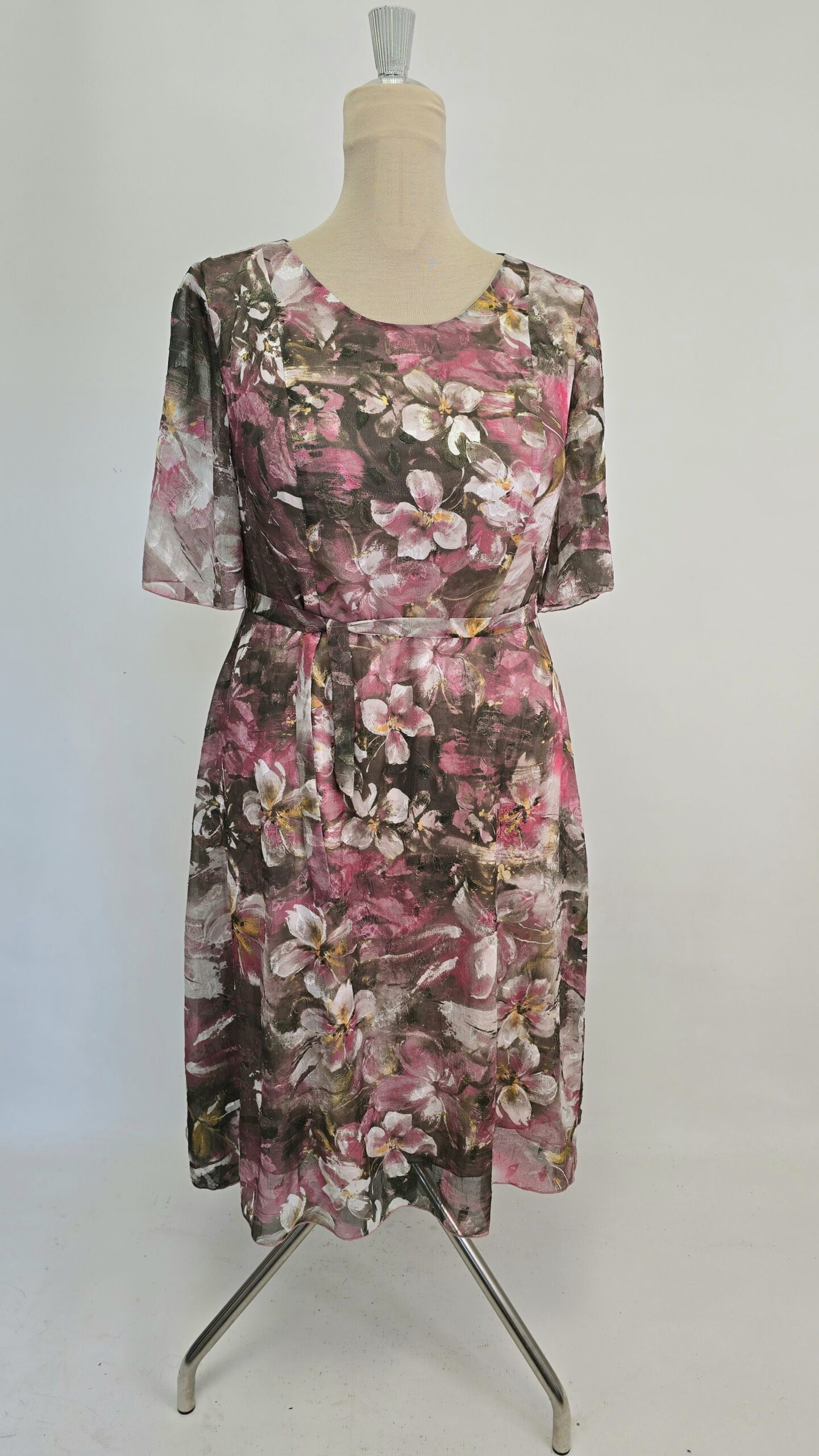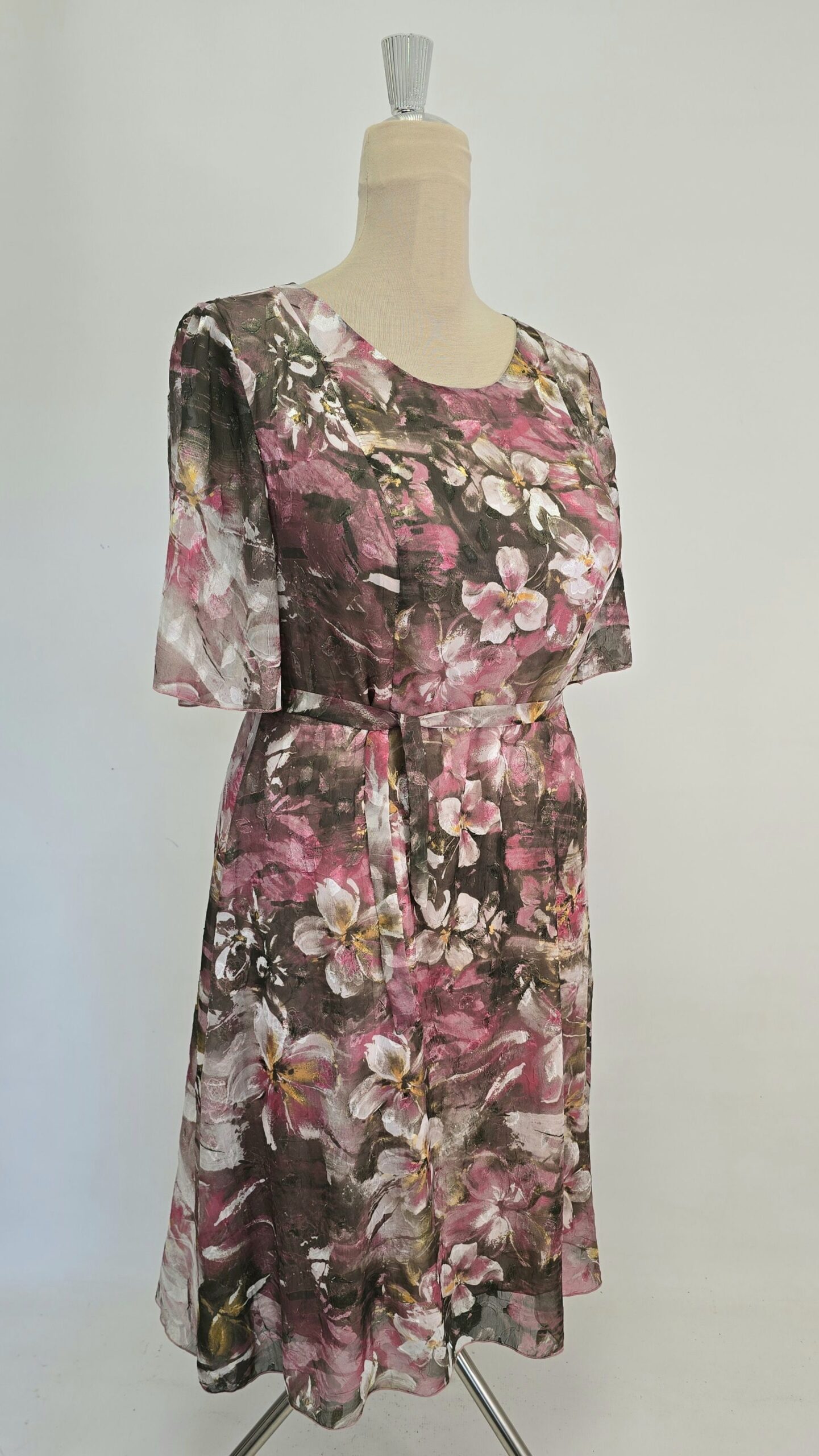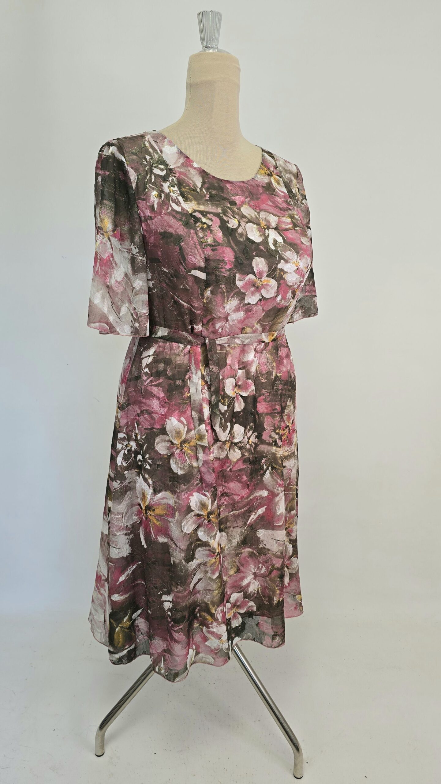 Rochie eleganta voal texturat captusita, cu maneca ampla la cot si cordon