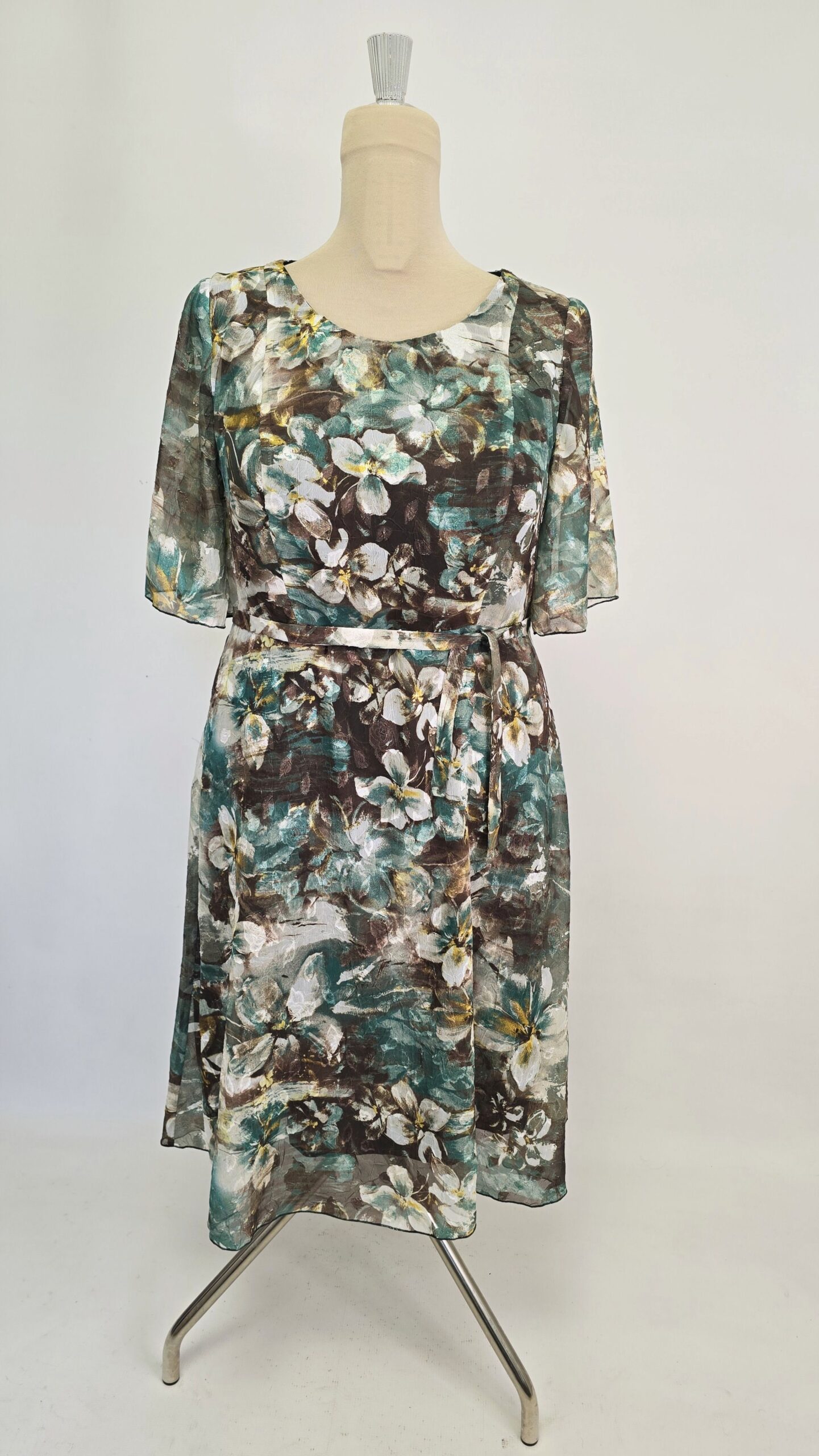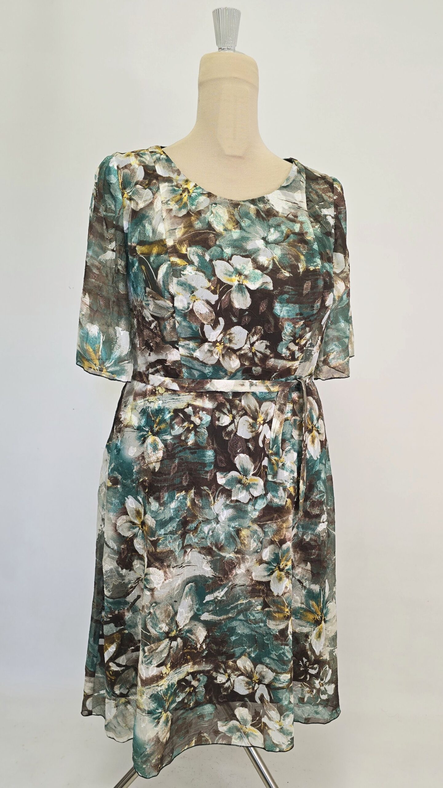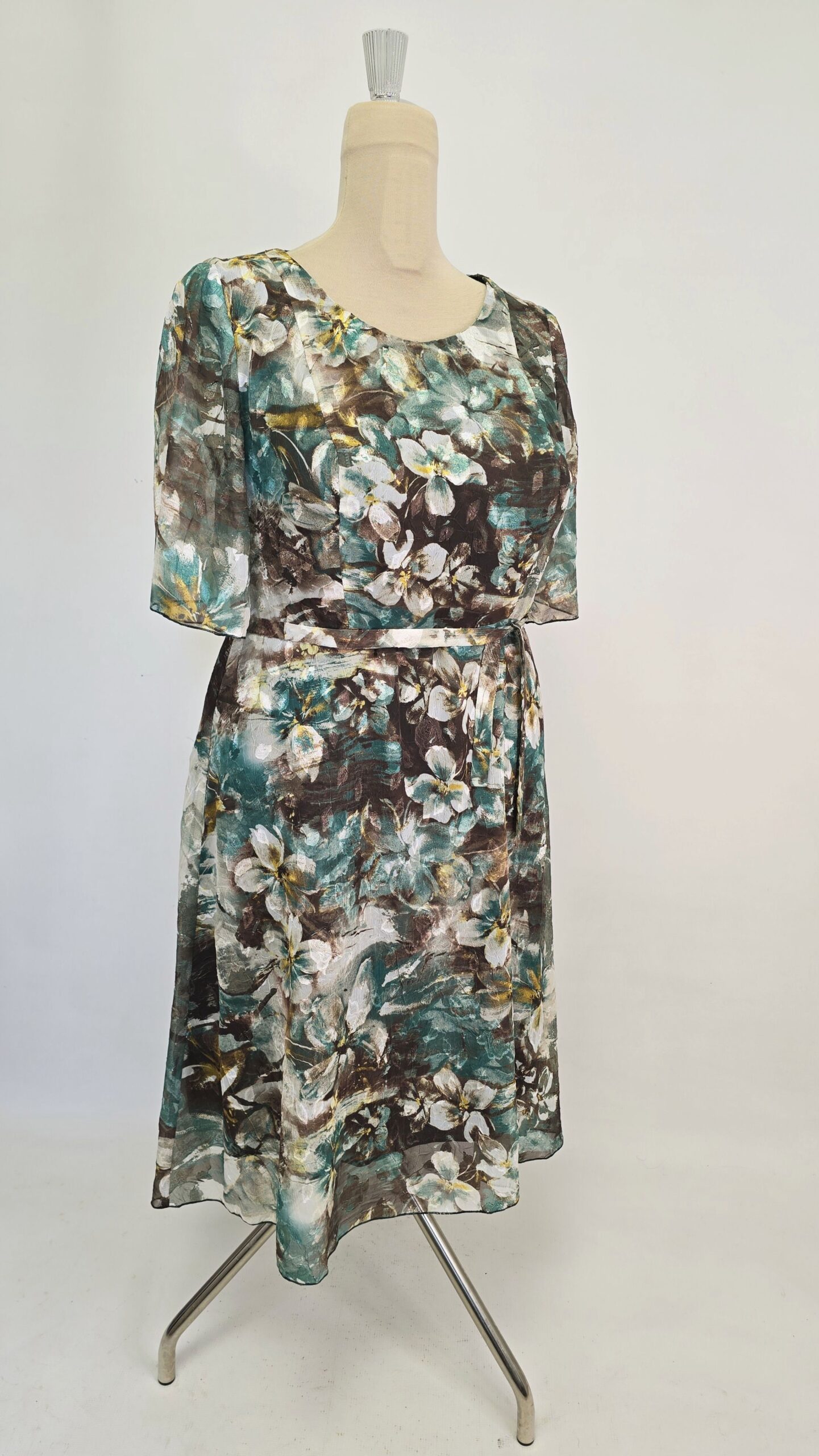 Rochie eleganta voal texturat captusita, cu maneca ampla la cot si cordon