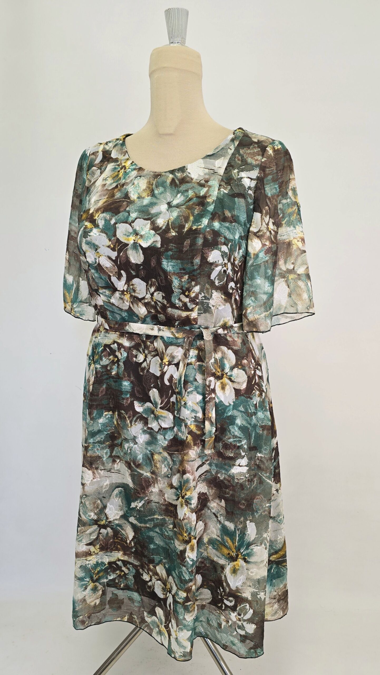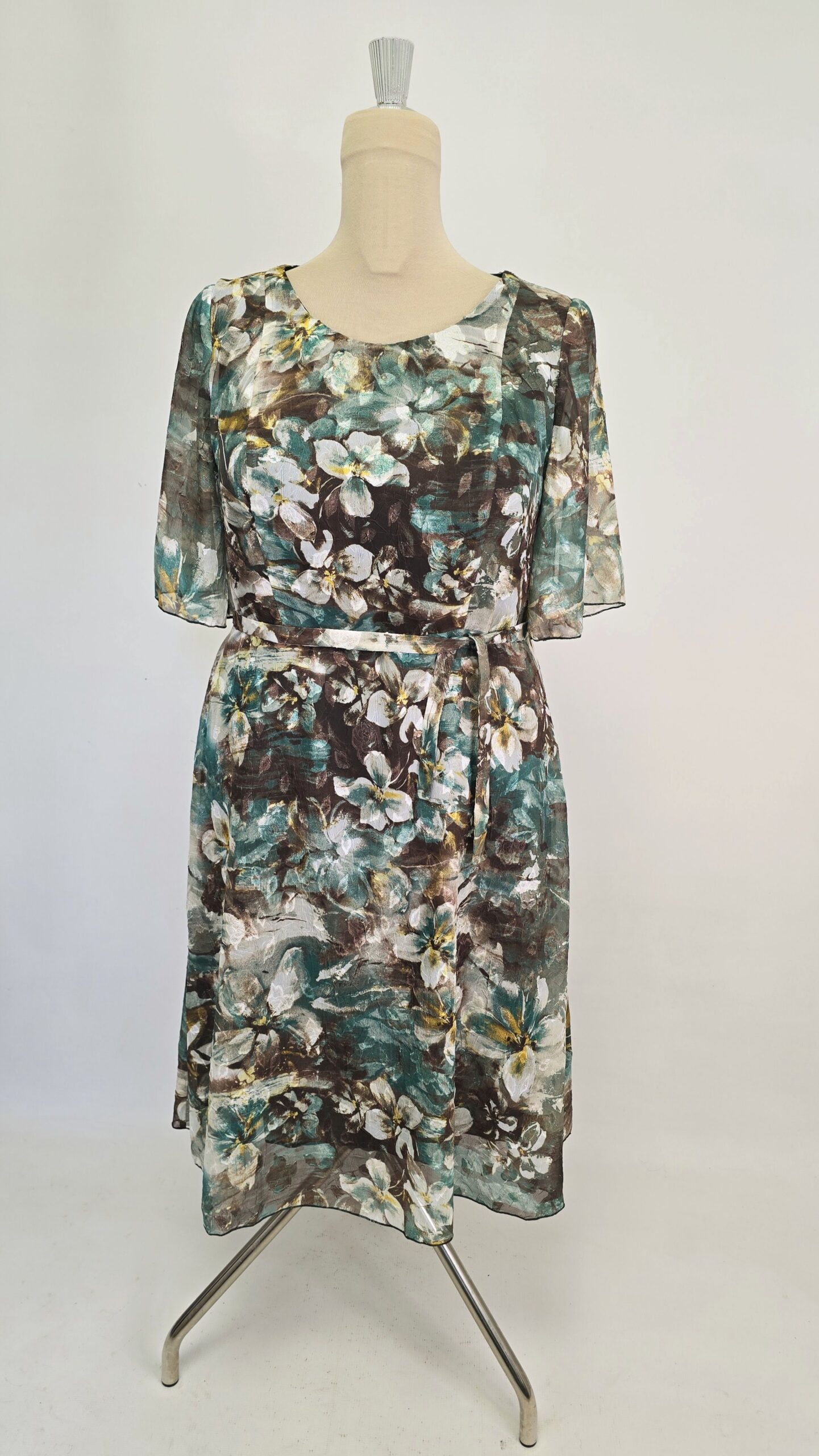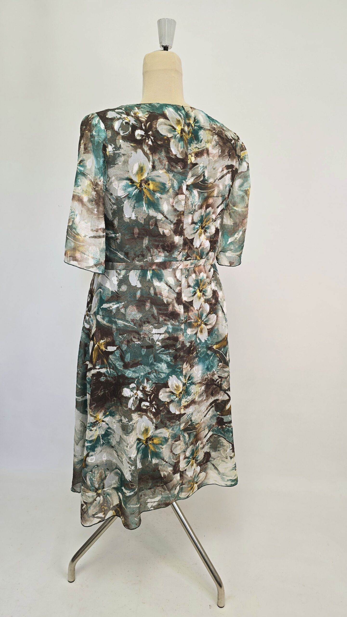 Rochie eleganta voal texturat captusita, cu maneca ampla la cot si cordon