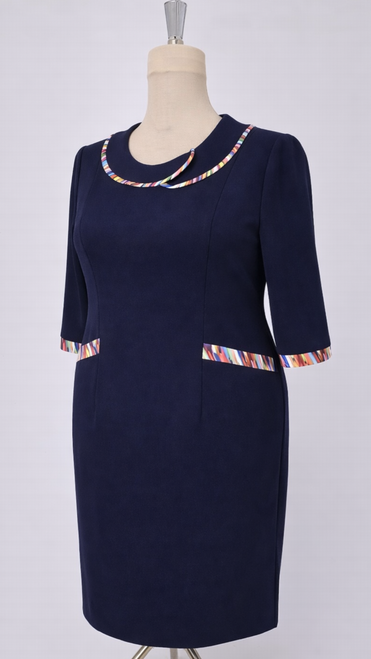 Rochie elegantă bleumarin cu detalii decorative multicolore