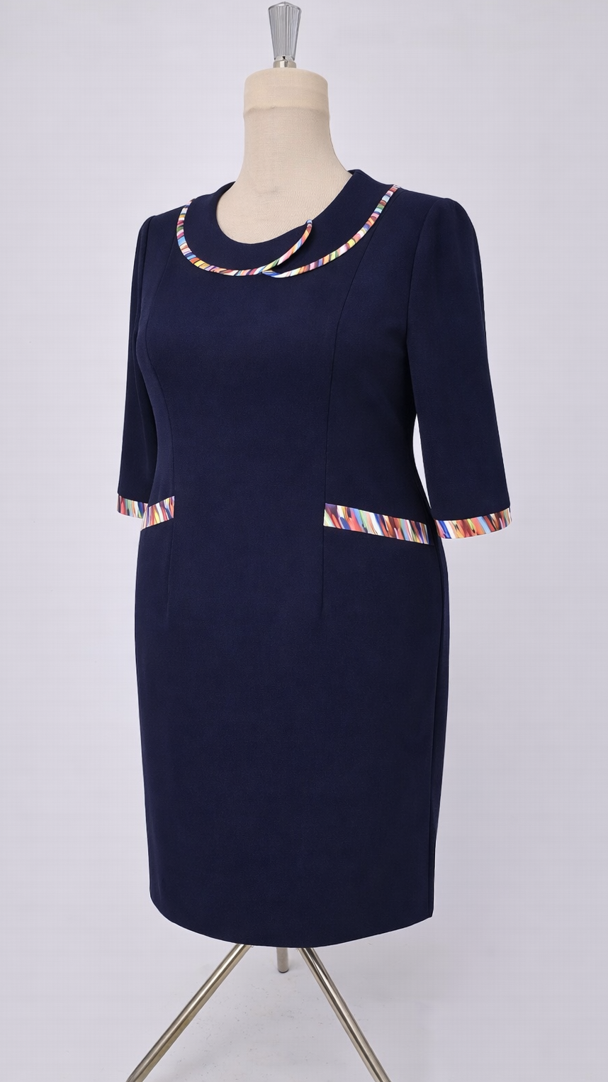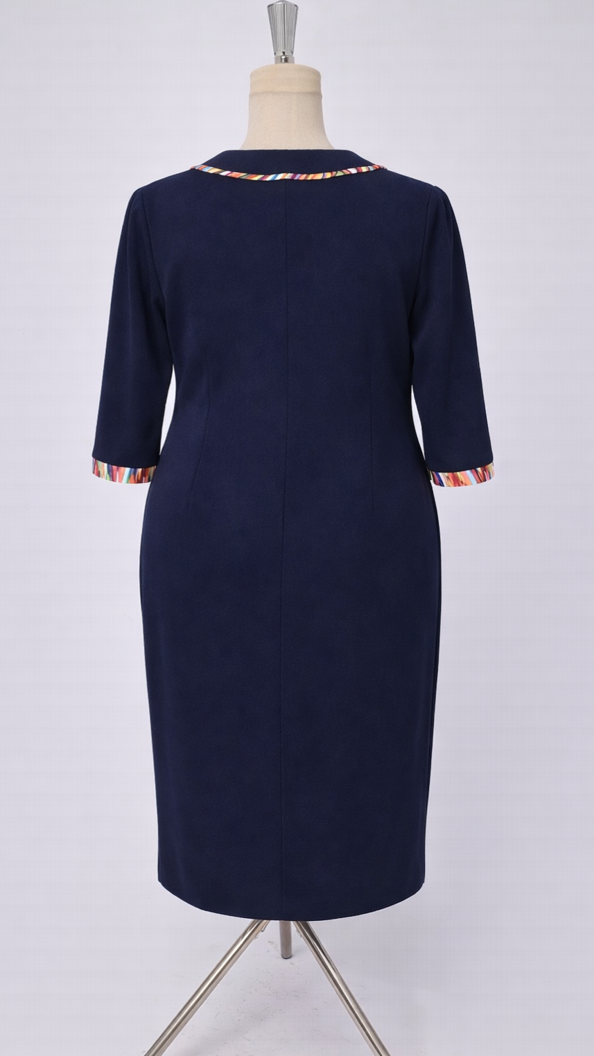 Această rochie elegantă în nuanțe de bleumarin este alegerea ideală pentru doamnele care își doresc o ținută rafinată, confortabilă și ușor de purtat. Croiul drept, atent proporționat, avantajează silueta și oferă libertate de mișcare, fiind potrivit atât pentru evenimente de zi, cât și pentru ocazii speciale.