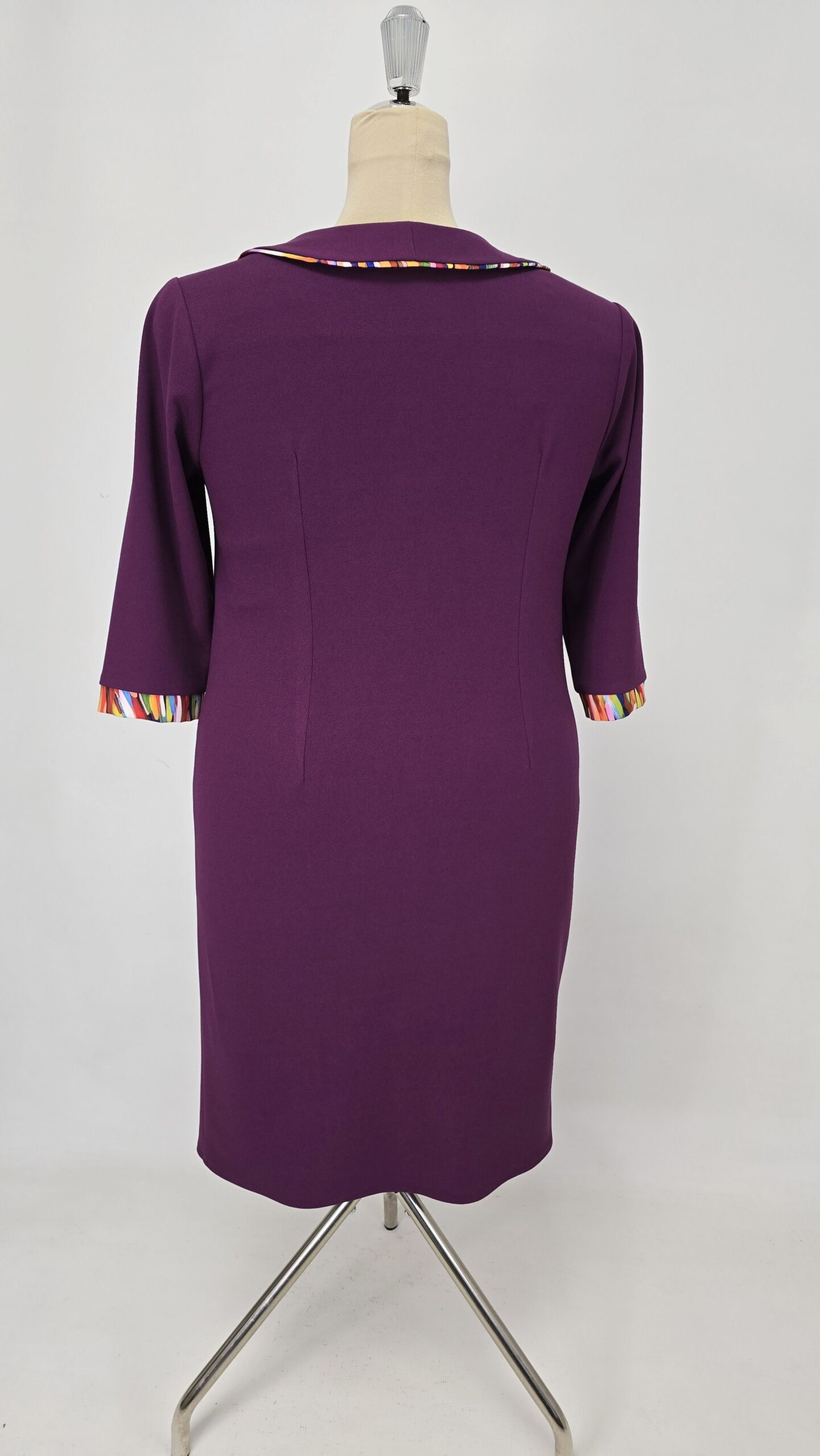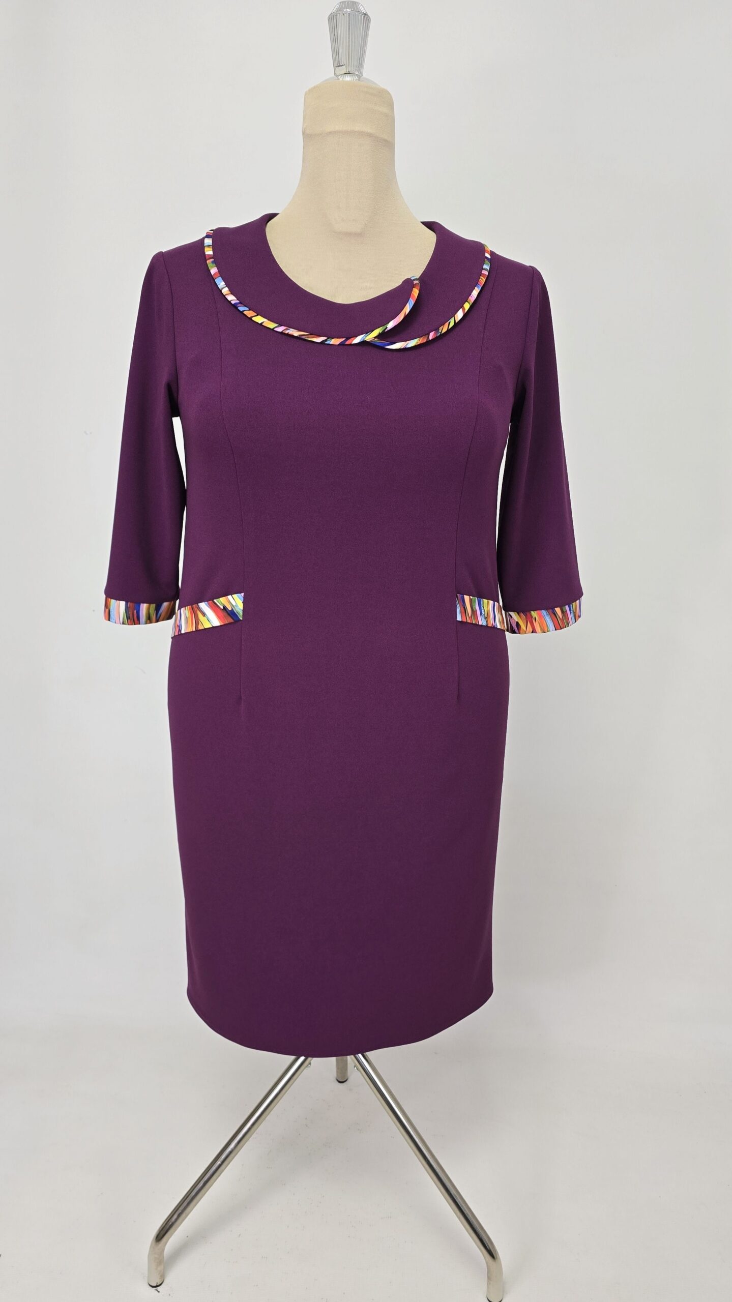 Această rochie elegantă în nuanță mov intens este alegerea ideală pentru doamnele care își doresc o ținută rafinată, confortabilă și ușor de purtat. Croiul drept, atent proporționat, avantajează silueta și oferă libertate de mișcare, fiind potrivit atât pentru evenimente de zi, cât și pentru ocazii speciale.