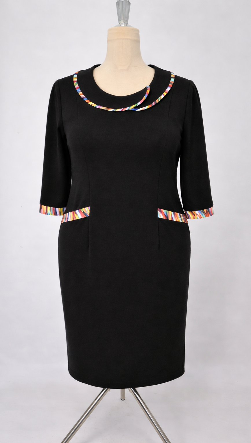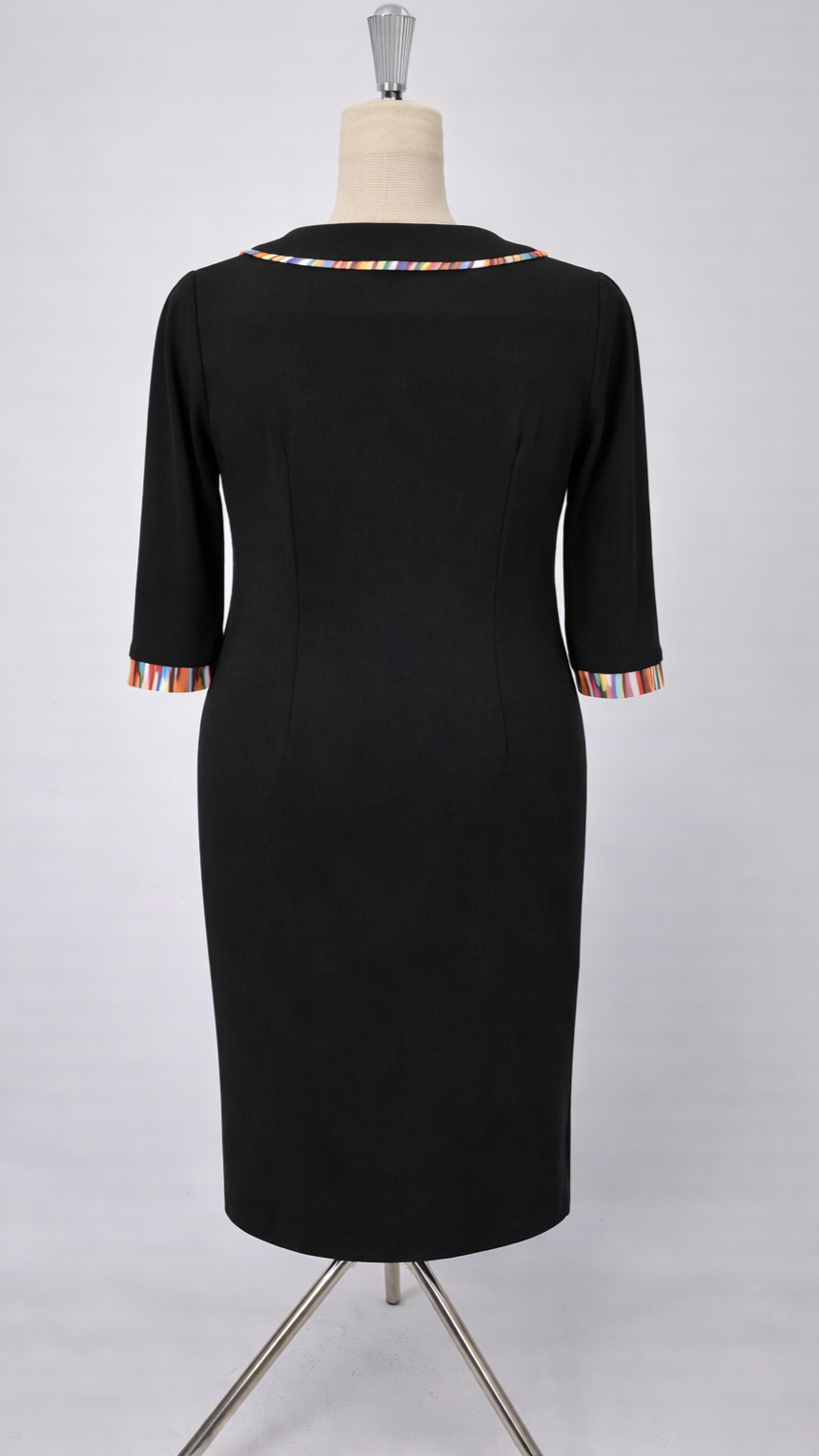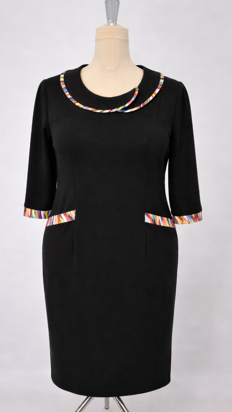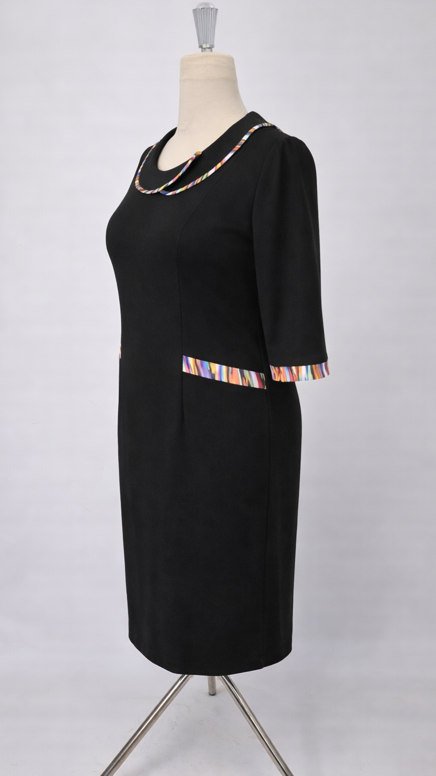 Rochie elegantă negru cu detalii decorative multicolore