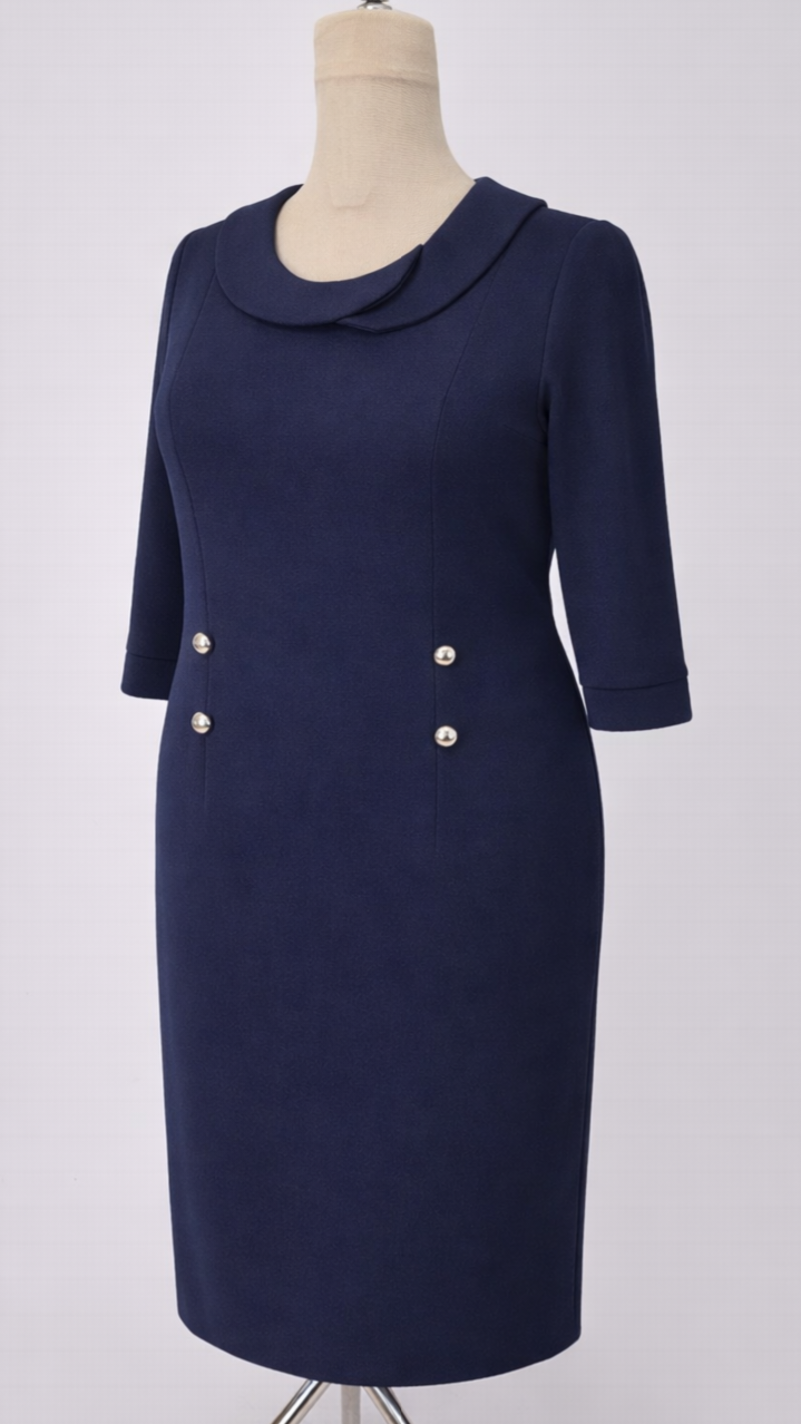 Această rochie elegantă, cu un aer rafinat, este creată pentru doamnele care apreciază eleganța și croiurile avantajoase.