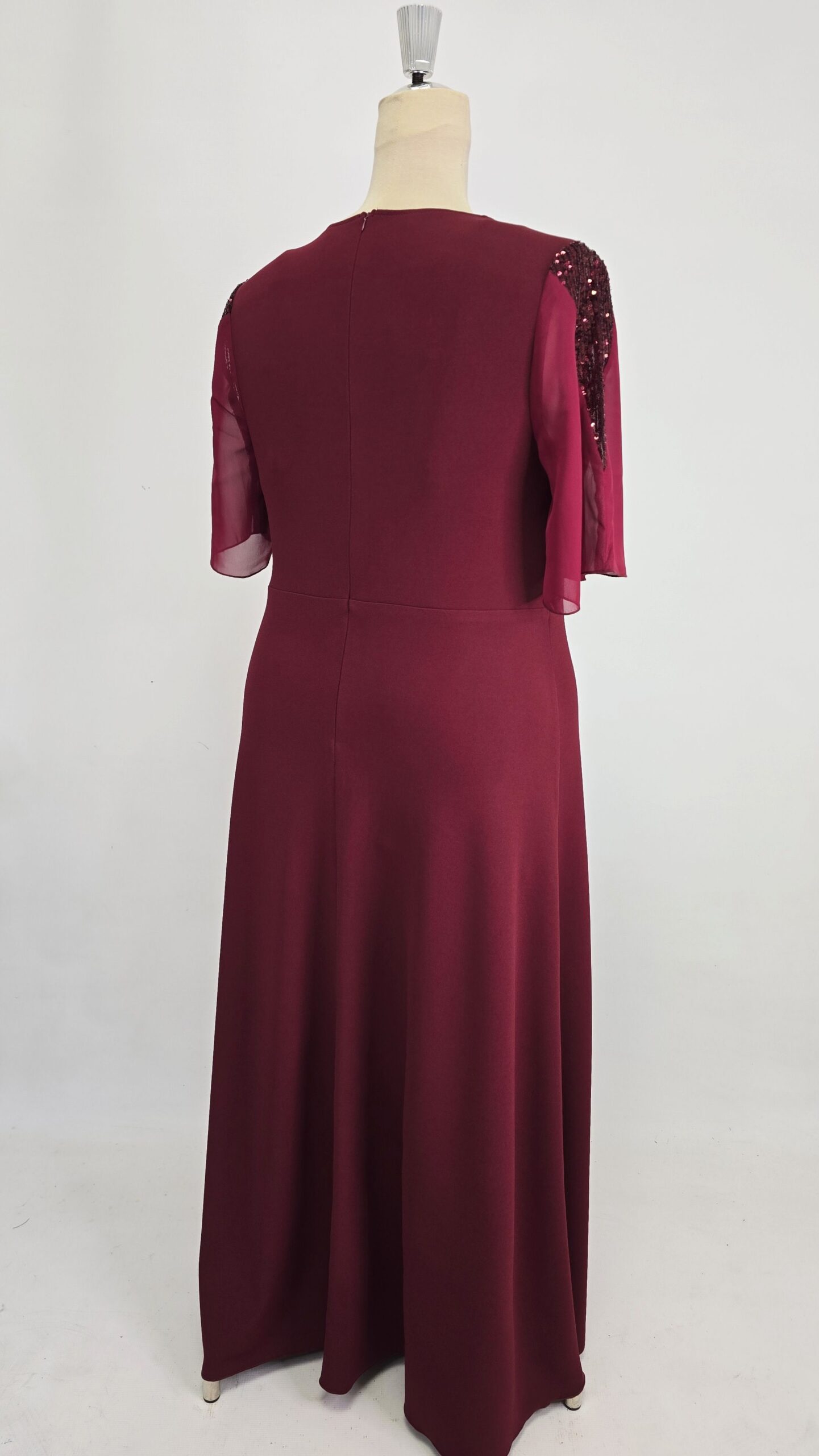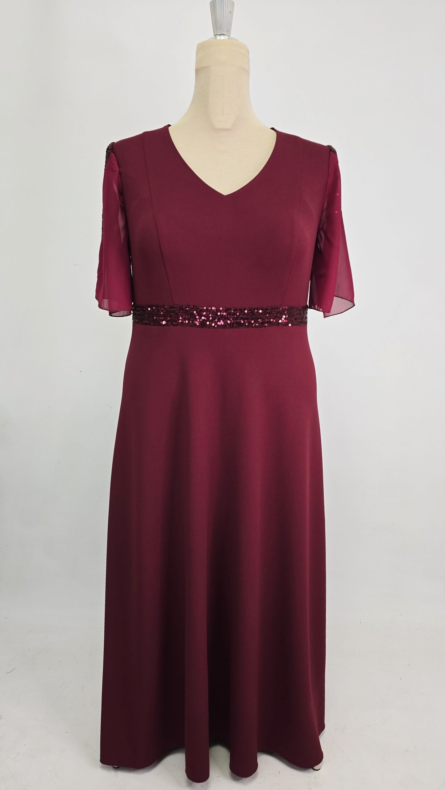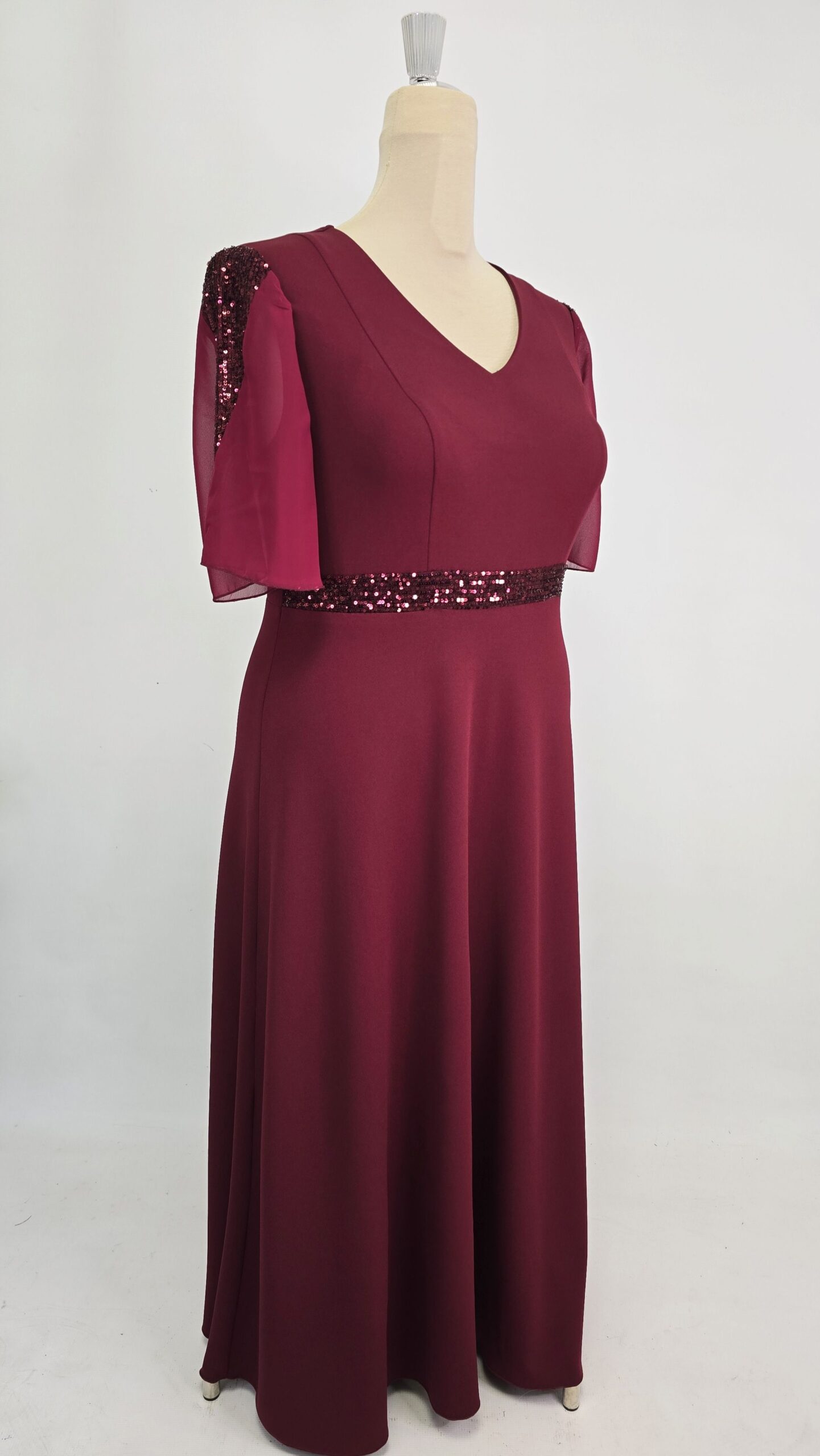 Rochie eleganta lunga cu banda din paiete aplicata in talie si maneci din voal lejere cu insertie in V din paiete. Aceasta rochie adaugă un plus de stil oricărei ocazii.