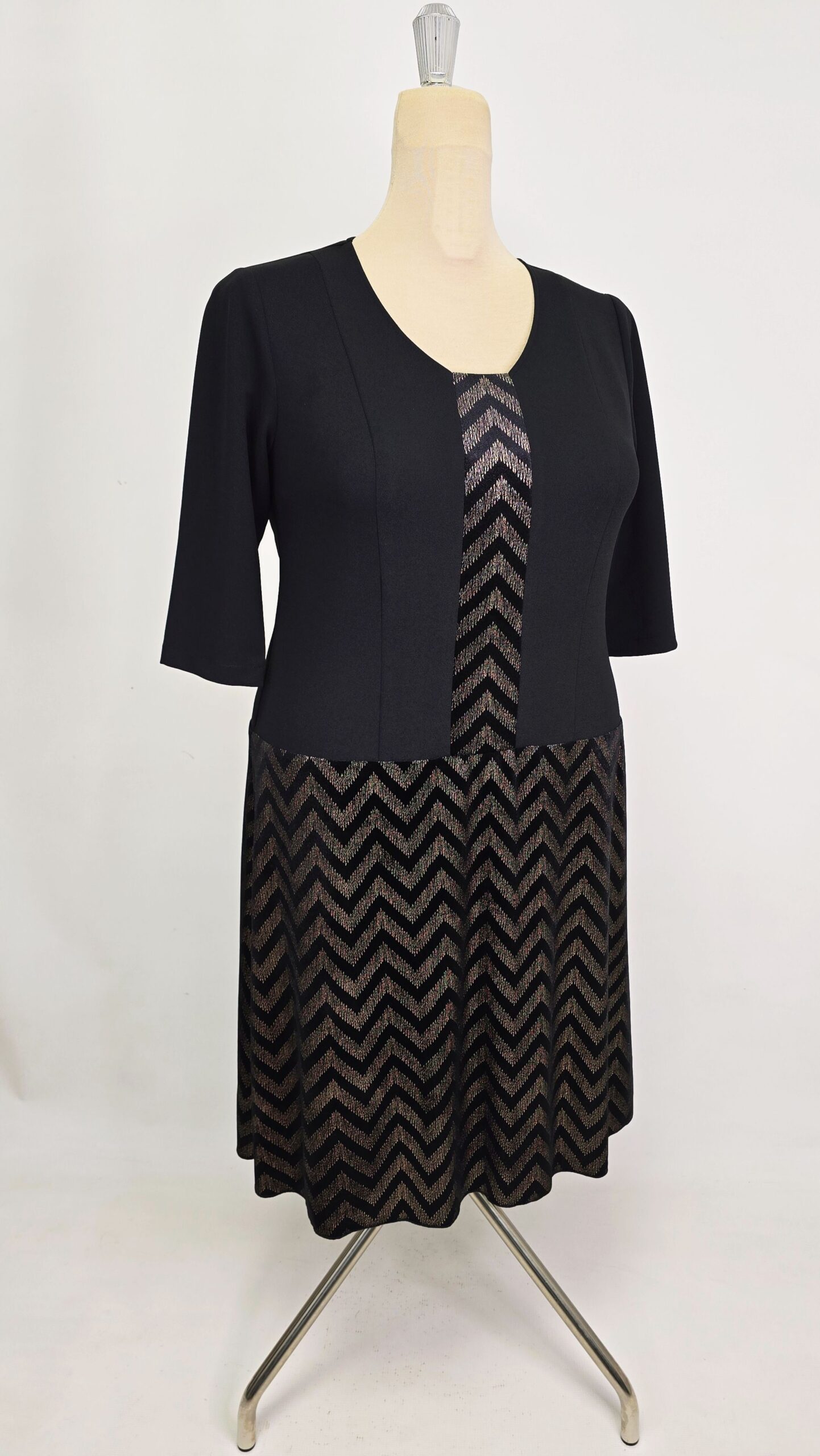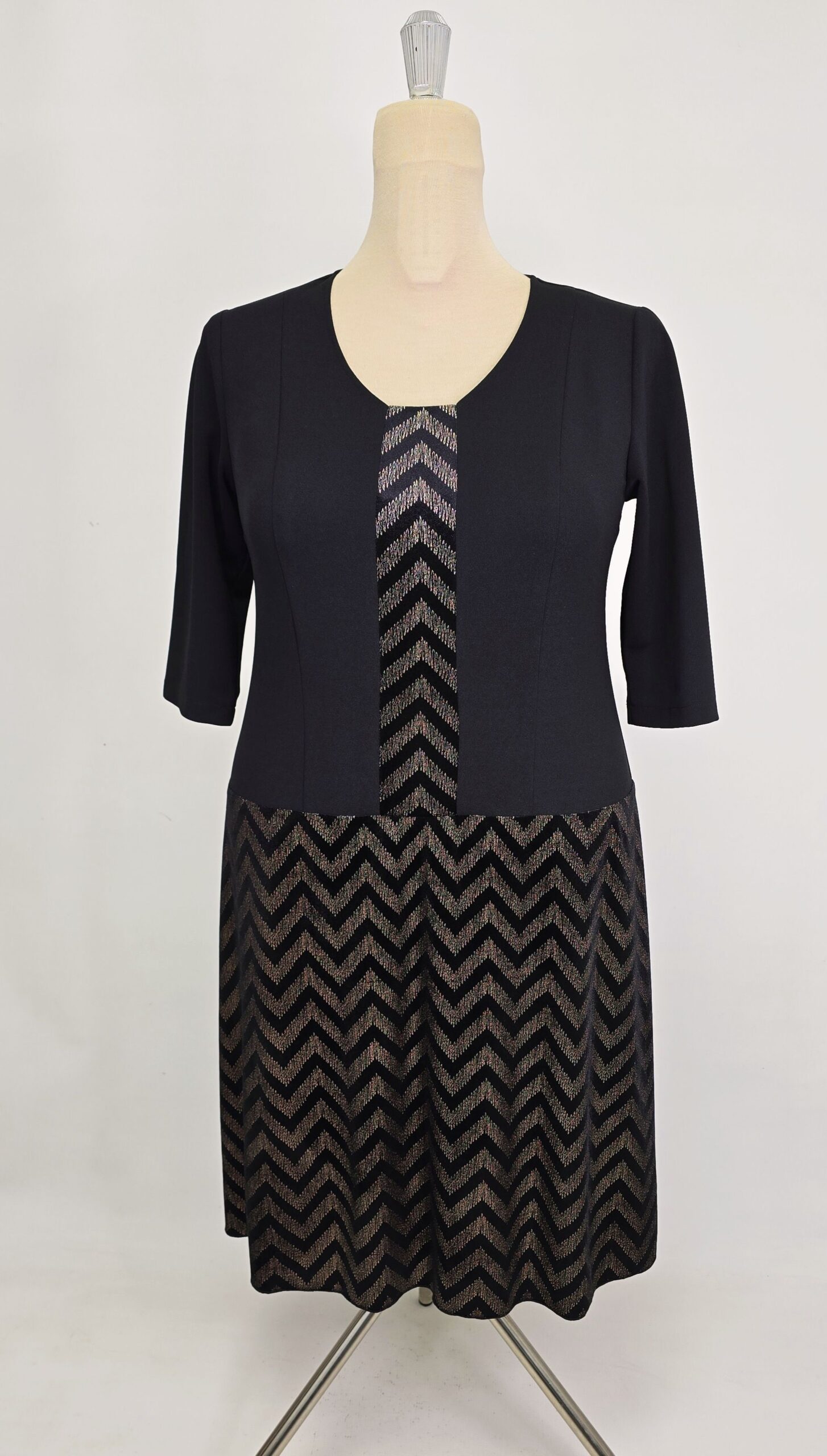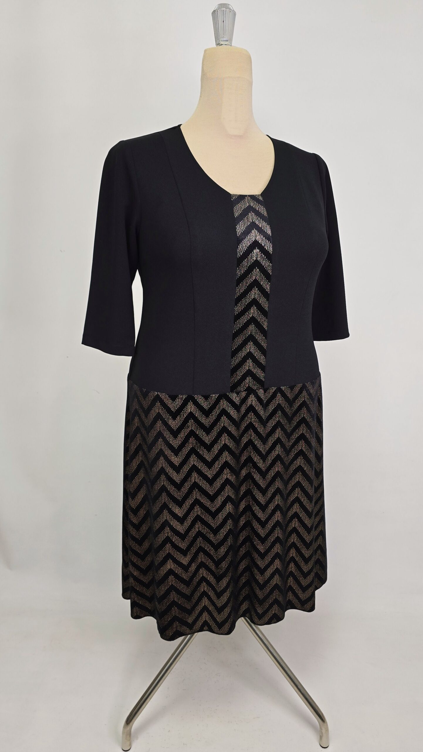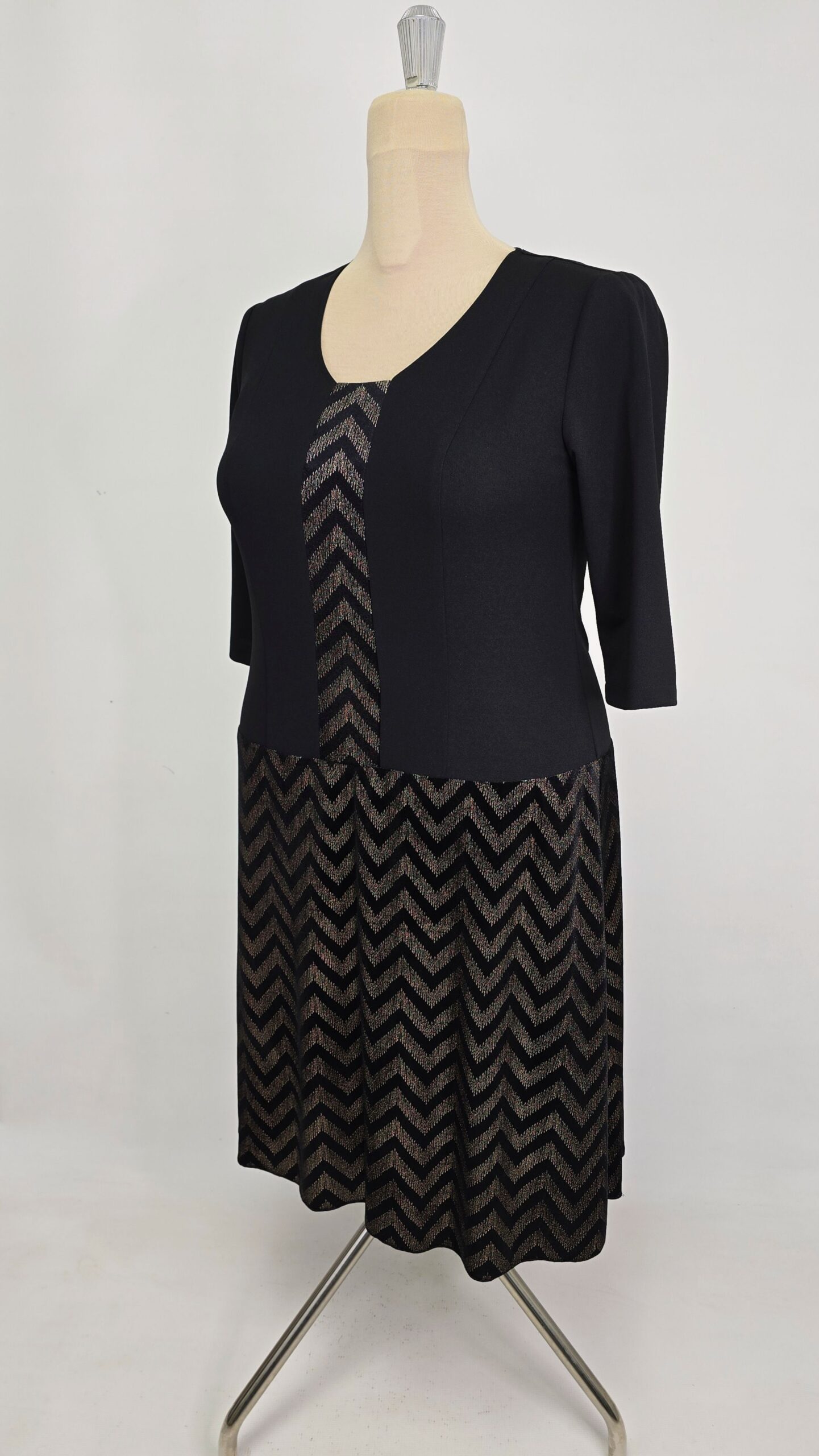 Rochie din catifea si crep elastic, accesorizata cu insertie pe mijlocul de fata din materialul fustei, imita foarte bine un set de doua piese sacou și fusta.