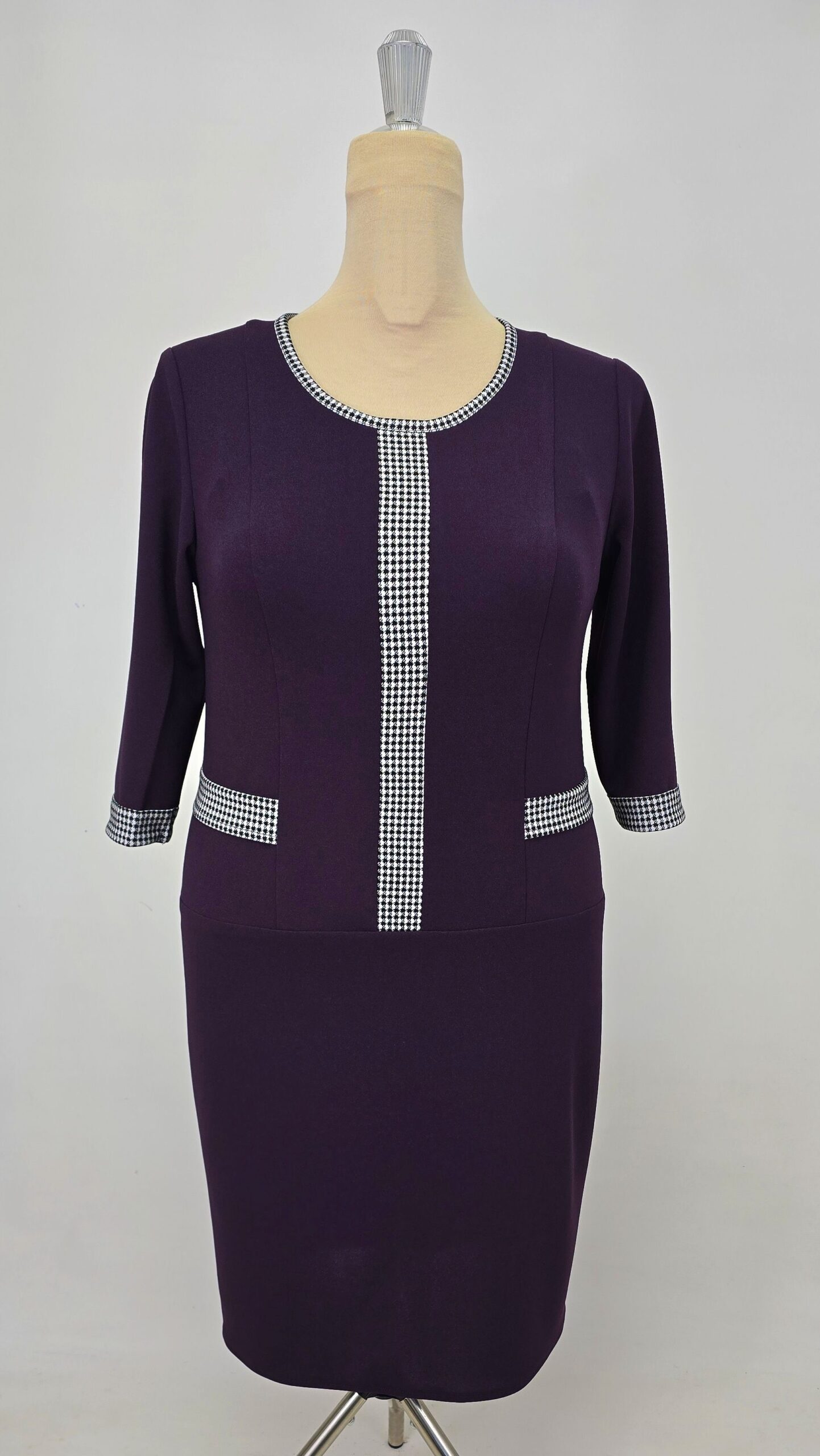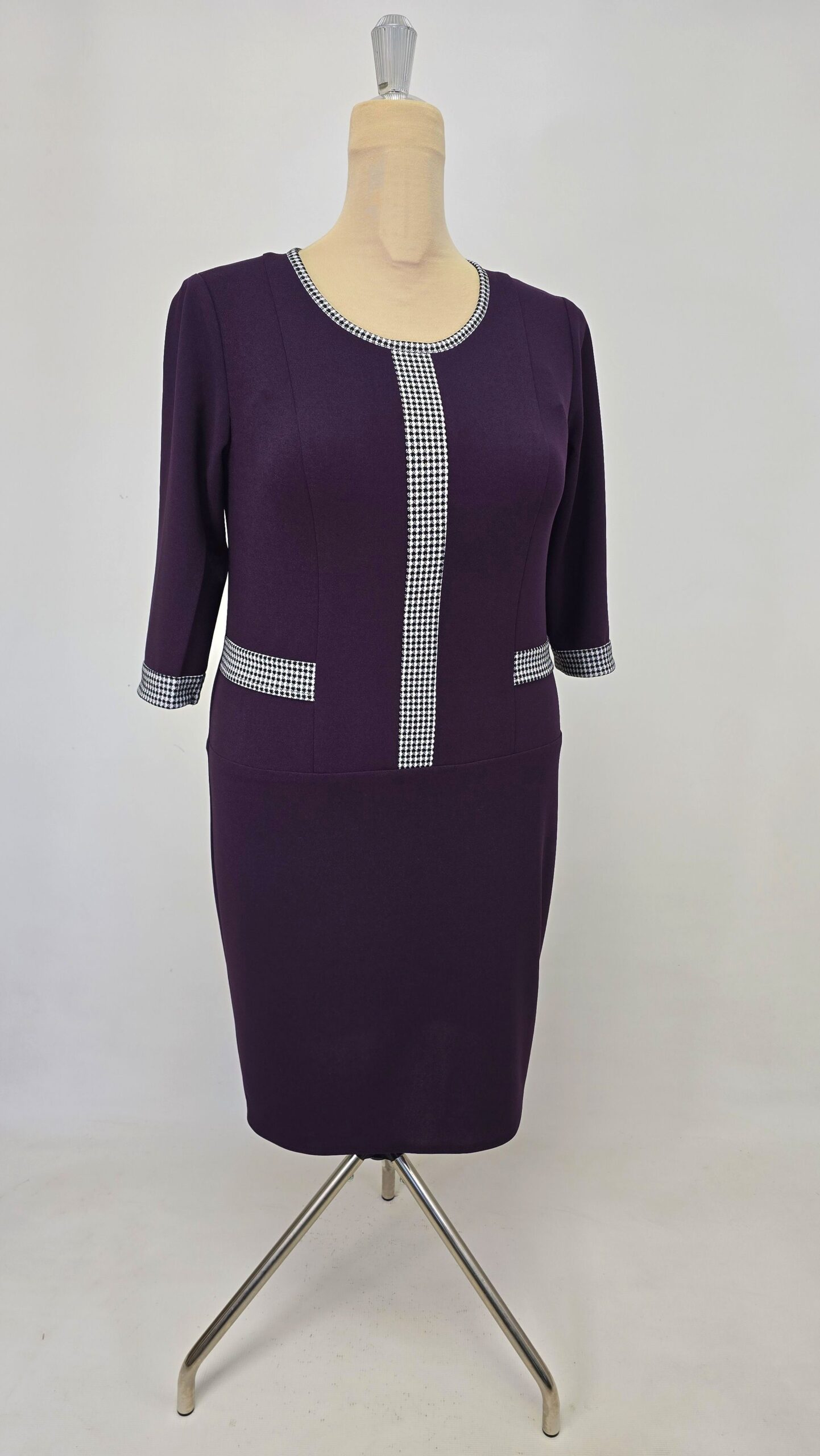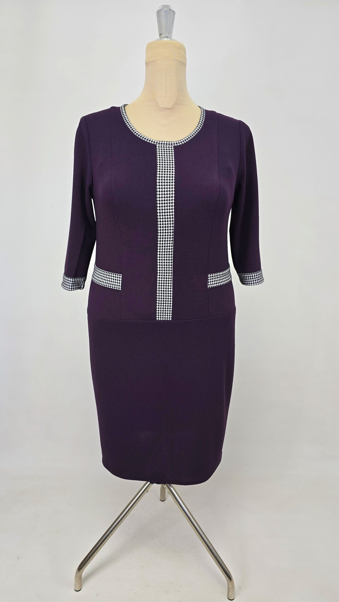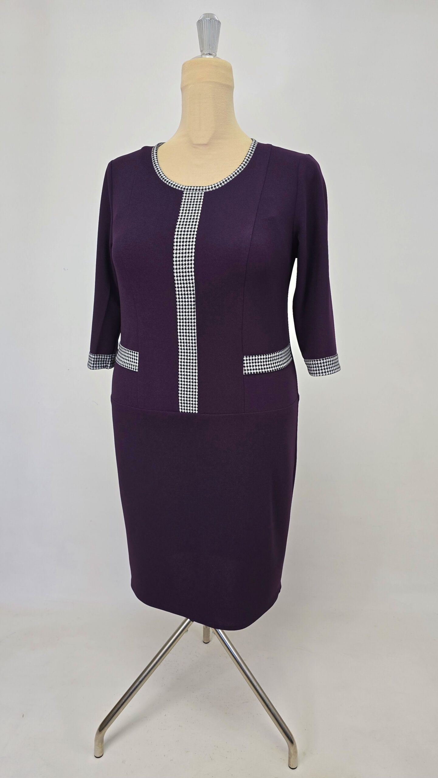 Rochie casual din crep elastic, accesorizata cu insertii si garnituri alb-negru, imita foarte bine un set de doua piese sacou și fusta.