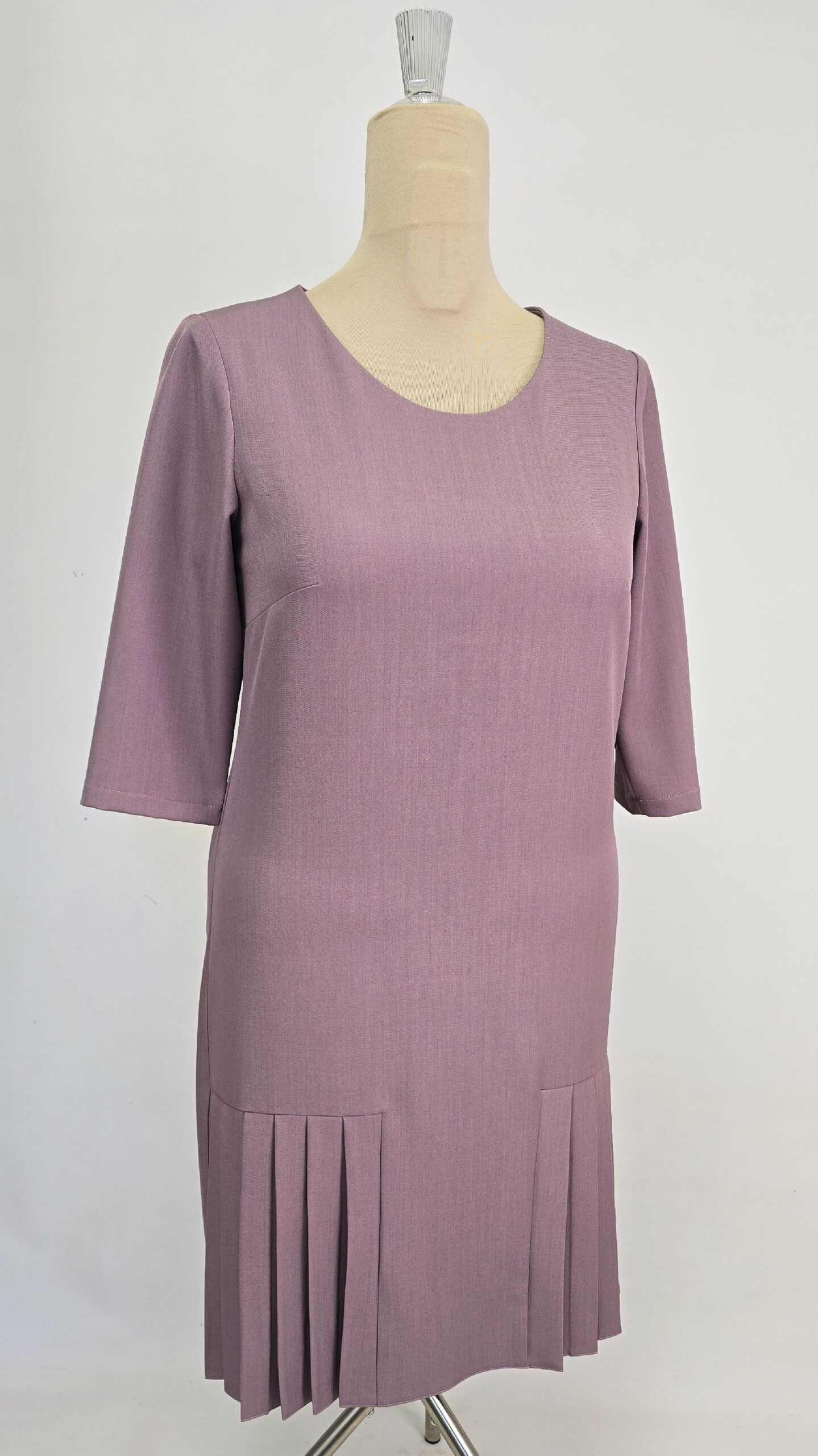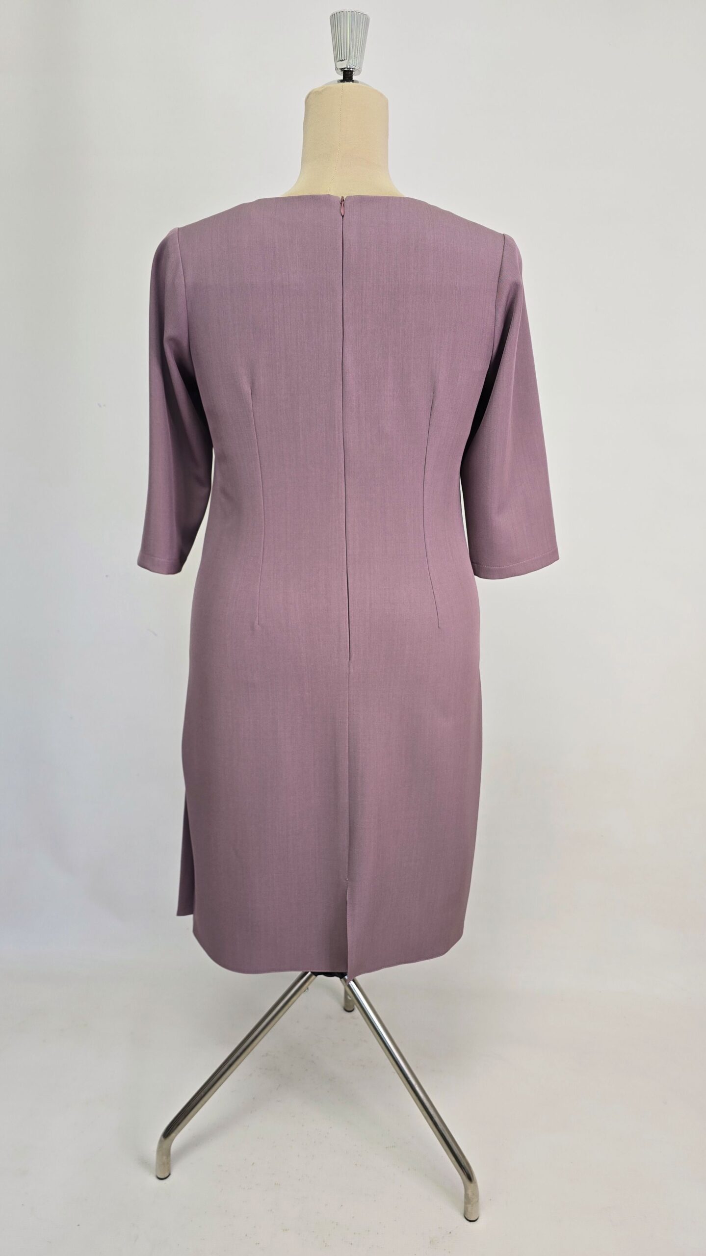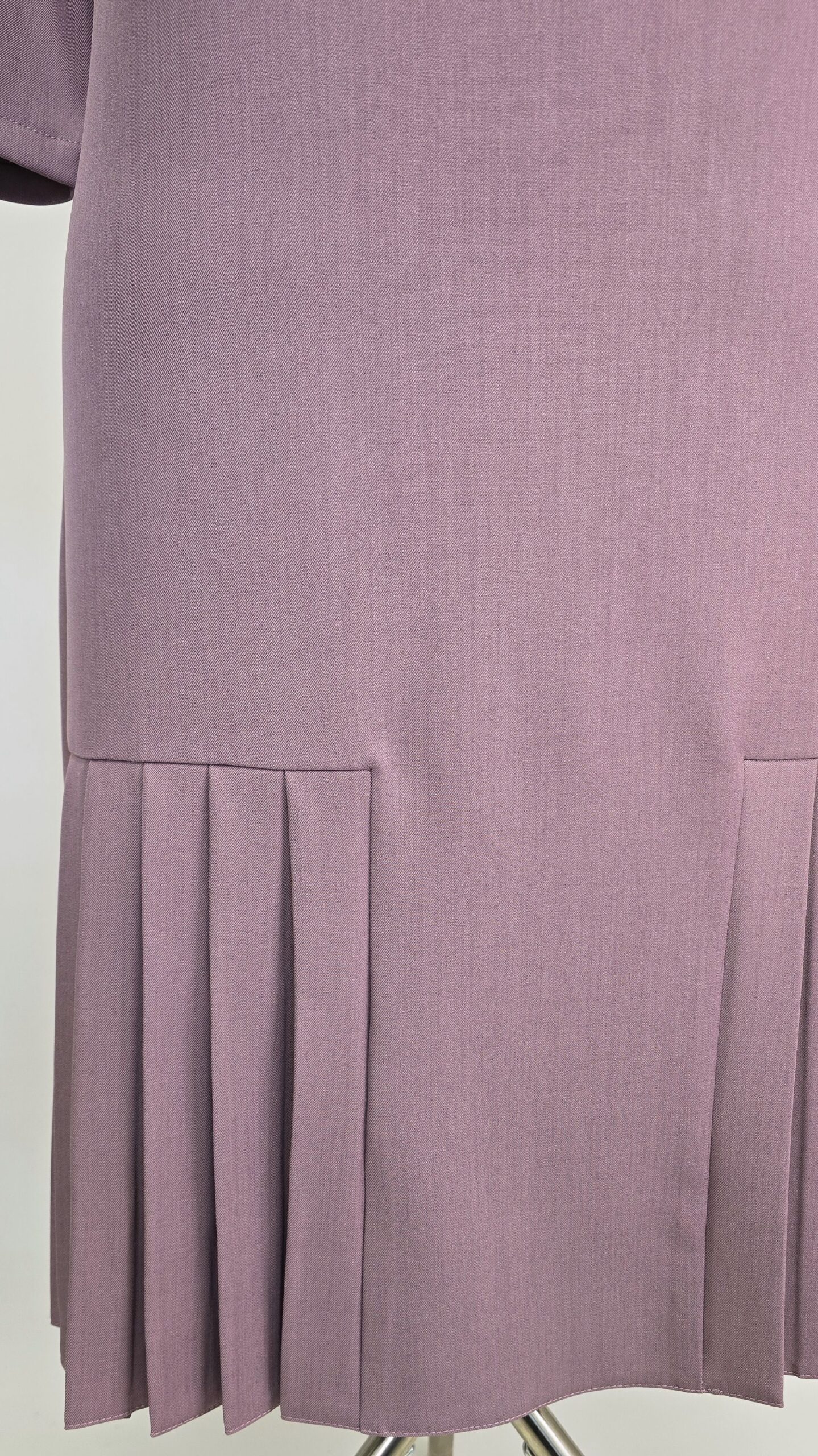 Rochie eleganta din stofa premium. Cu decolteul barcuta si croiul drept cu pliseu inserat, aceasta rochie adaugă un plus de stil oricărei ocazii.